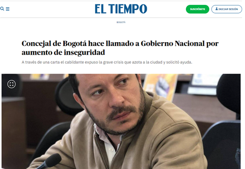 Fui Concejal de Bogotá por segundo periodo, elegido con cerca de 50.000 votos, una de las votaciones más altas de la ciudad. En 2024, fui elegido Presidente del Concejo de Bogotá con 44 votos, una mayoría histórica.